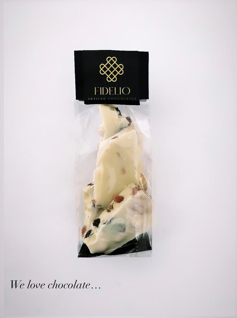 • Üzümlü ve Portakal Şekerlemesi Parçacıklı Beyaz Çikolata